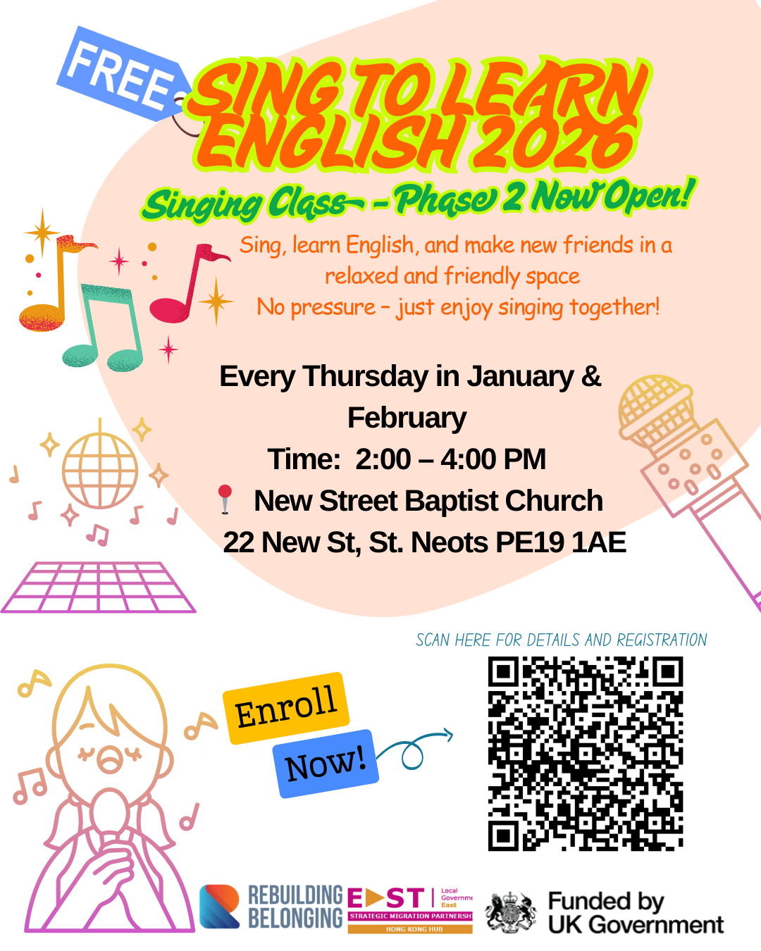 Join our free English class through singing and fun activities — led by a local singer!