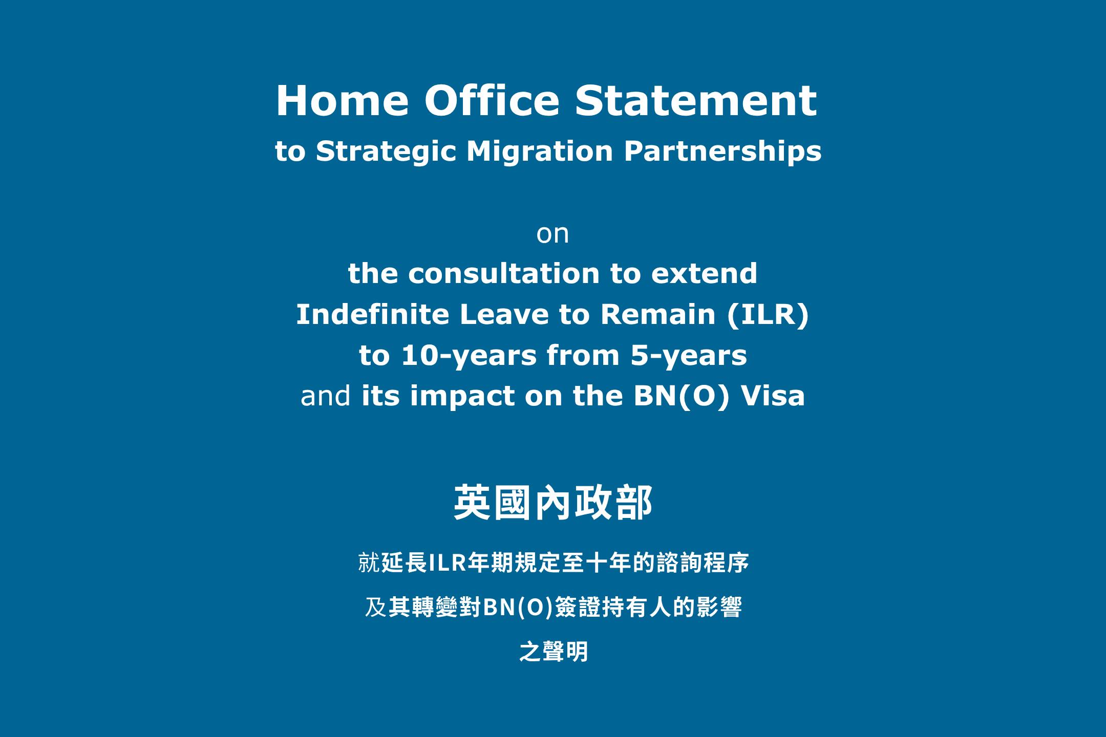 英國內政部就延長ILR年期規定至十年的諮詢程序及其轉變對BN(O)簽證持有人的影響之聲明